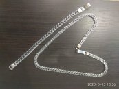 Полновесная цепочка. Очень популярное среди мужчин плетение «Рамзес», также на просторах интернета данное плетение можно увидеть под названием «Двойной обратный бисмарк». В особенности мужское внимание привлекают толстые серебряные цепочки из «Двойного обратного бисмарка» с размерами близкими к размерам на фото. И тем не менее, если такая цепочка лично для Вас смотрится на шее весьма громоздкой или наоборот маловатой, то Вы без особого труда можете откорректировать практически любой её параметр под свои вкусы, в том числе есть возможность выбрать как с чернением, так и нечернёную или же с родированием.