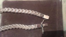 Походящая длина браслета зависит от его массы и обхвата запястья. Справа указаны массы браслета и диапазоны длин, на которые он должен быть больше обхвата запястья. Большинству людей подойдут такие размеры цепочек: - Крупное телосложение — 58-70 см