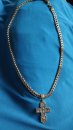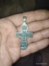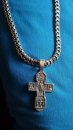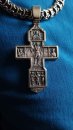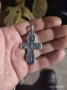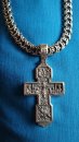 Изображено на кресте: Распятие Христово с предстоящими. Святая Троица. Архангел Михаил. Святые Воины. Тихвинская икона Божией Матери. Православный крест.Высота: 8 мм